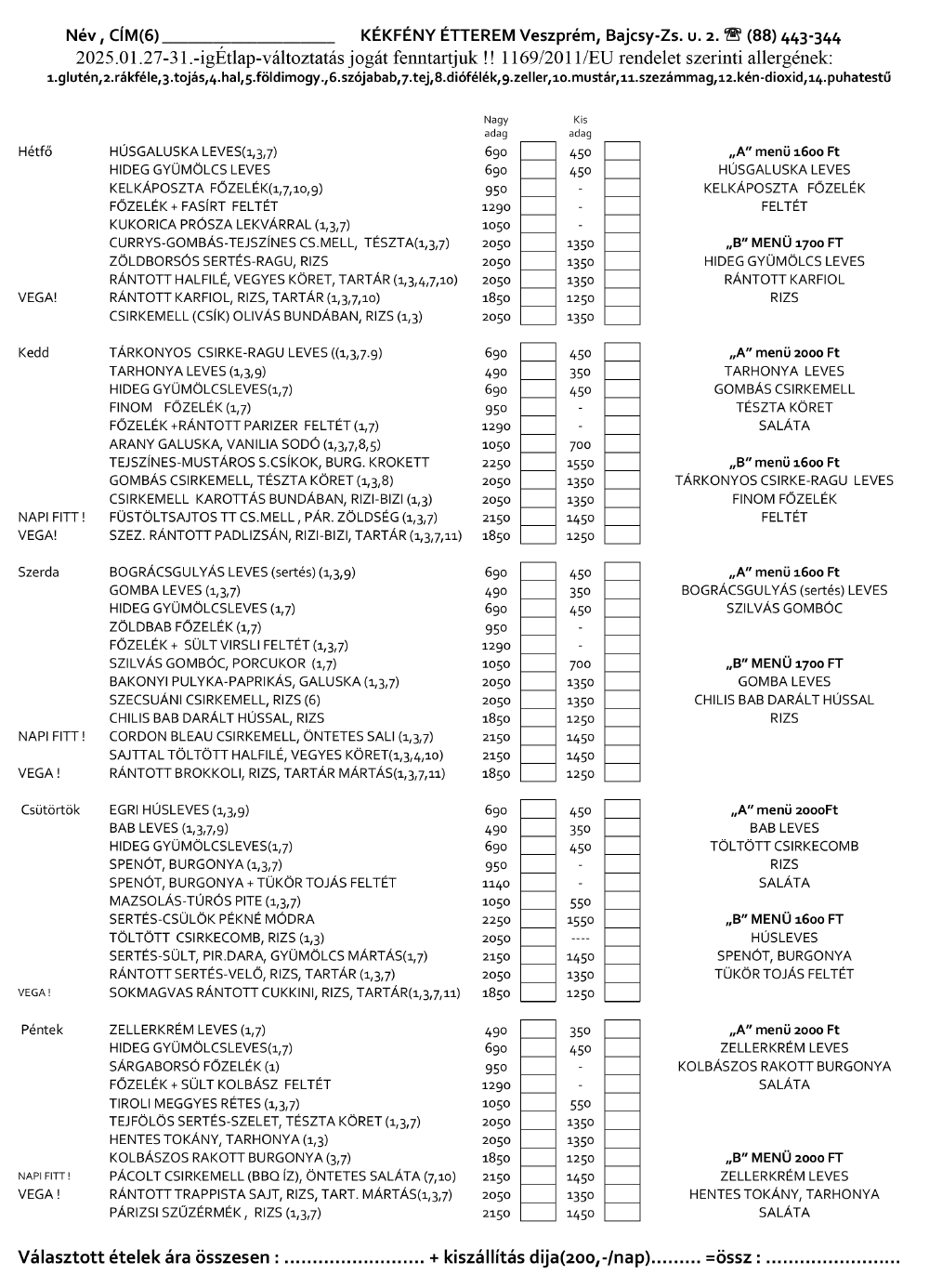 Naponta frissülő menü, mely a klasszikus ízek mellett újdonságokat is kínál.